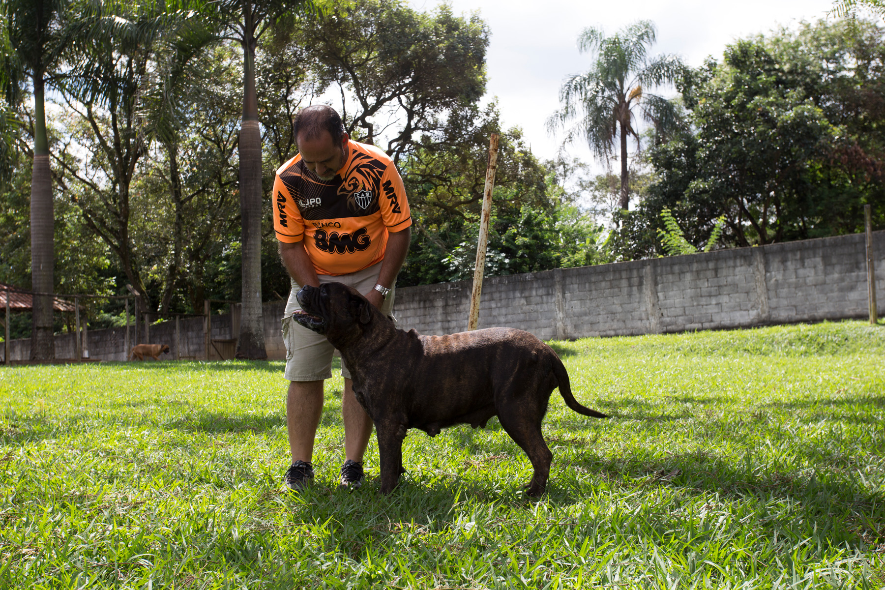O Bullmastiff foi a raça escolhida para criação por ser muito forte e imponente, mas ao mesmo tempo dócil e com um temperamento bem equilibrado.