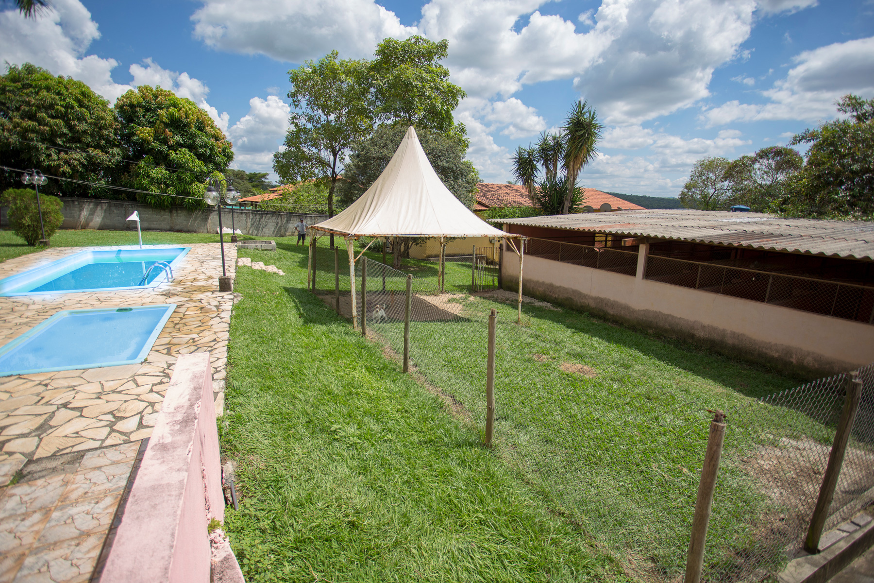 Com uma estrutura de 3.000m2, contamos com piscina, esteira, maternidade, canis individuais (cobertos e com o tamanho que seu amigo merece!), além de 5 picadeiros. Muita área verde onde os cães podem se exercitar, brincar e interagir com outros hóspedes (caso o proprietário deseje).